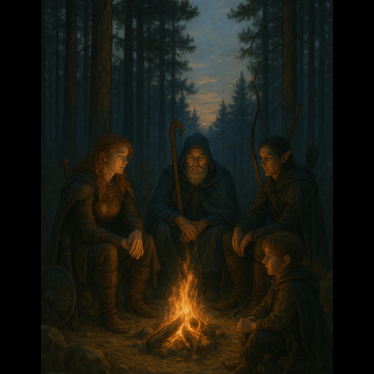 A medieval acoustic ballad driven by intertwining piano and harp melodies, set over a soft lute foundation, Gentle flute carries the theme, embedded within subtle campfire ambiance, birdsong, faint wind, and delicate chimes, creating an emotional, immersive forest soundscape, ‑electronic, ‑techno, ‑dubstep, ‑synth, ‑synthwave, ‑modern pop, ‑trap, ‑hip hop, ‑reggaeton, ‑autotune, ‑edm, ‑club, ‑dance, ‑industrial, ‑glitch, ‑ambient drone, ‑lo-fi, ‑chiptune, ‑future bass, ‑vaporwave, ‑funk, ‑jazz fusion, ‑experimental noise
