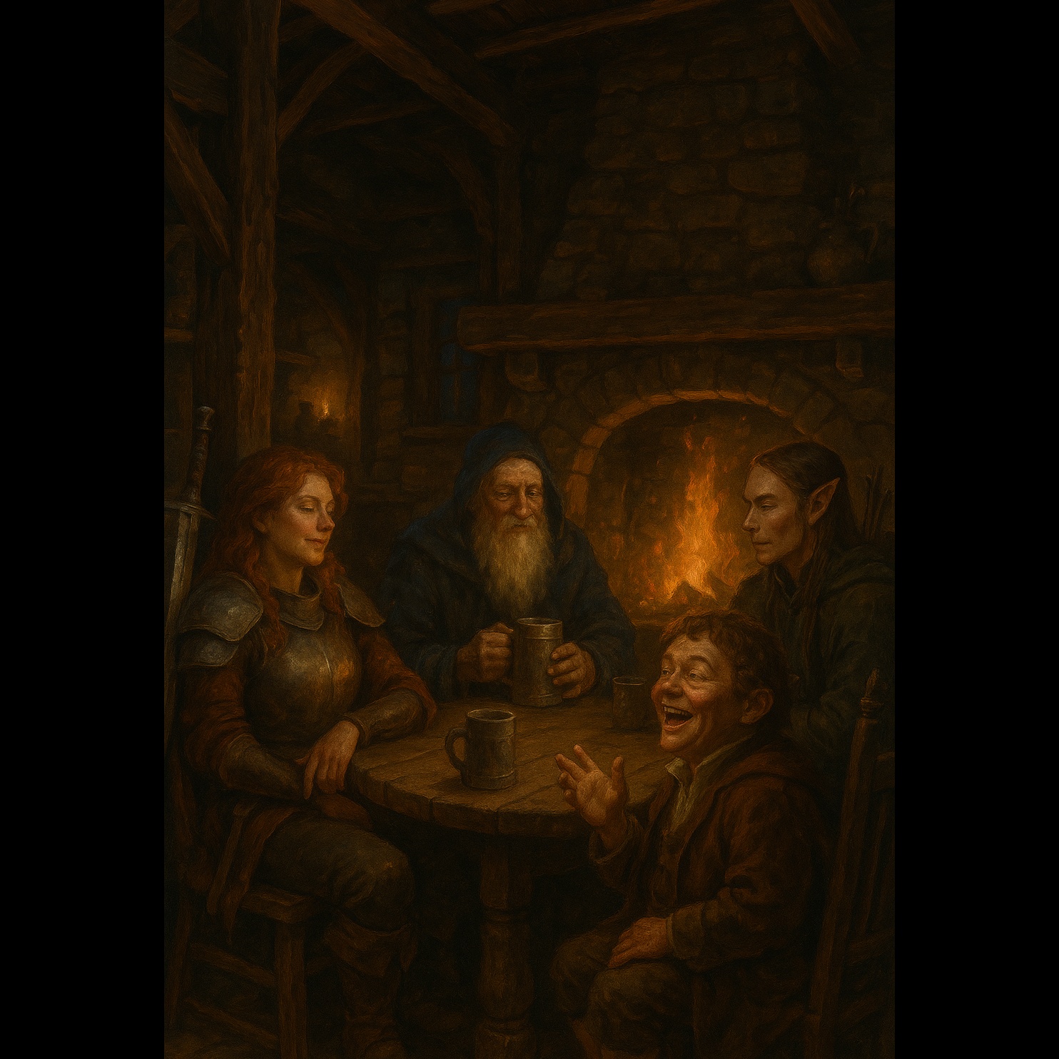 Warm medieval tavern song with lute, psaltery, and rebec, no wind instruments, gentle and joyful, evokes weary travelers relaxing by the fire, clinking mugs, soft melodies under candlelight