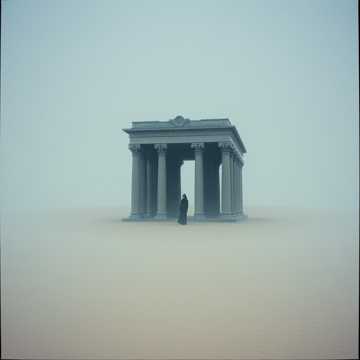 Monastic ritual fantasy: restrained female vocals in low register, almost chanted, over long drones and subtle tonal swells, Sparse, distant toms and frame drums in irregular patterns; breaths and rustling textures act as rhythm, Melody is narrow, disciplined, with unison group chants in the hook, Reverb is cavernous but controlled, giving the sense of a vast stone temple facing a storm-wracked desert, Dynamic arc slowly builds density, not volume, then recedes back into near-silence, female vocals, emotional, low