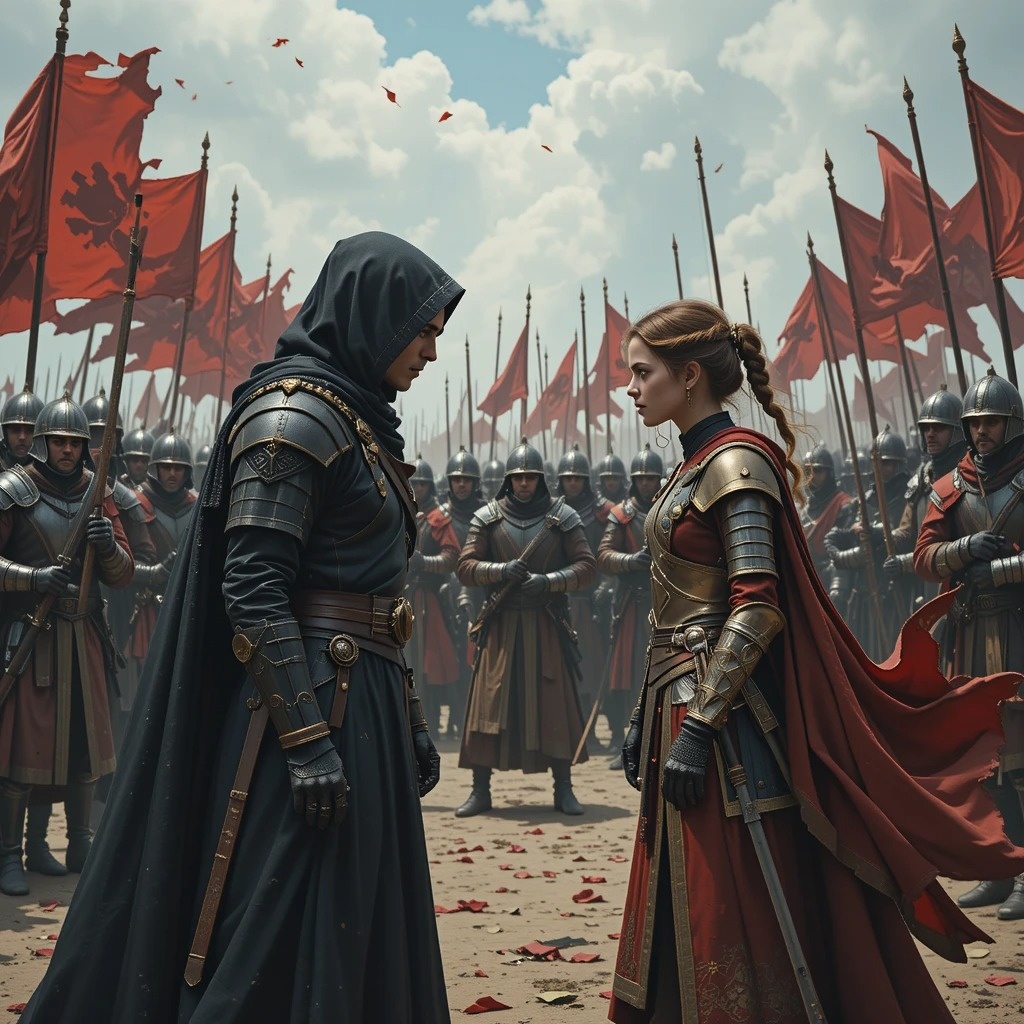 [Serious, intense, energetic, cinematic, evokes heroic battle, struggle, determination, ultimate victory]