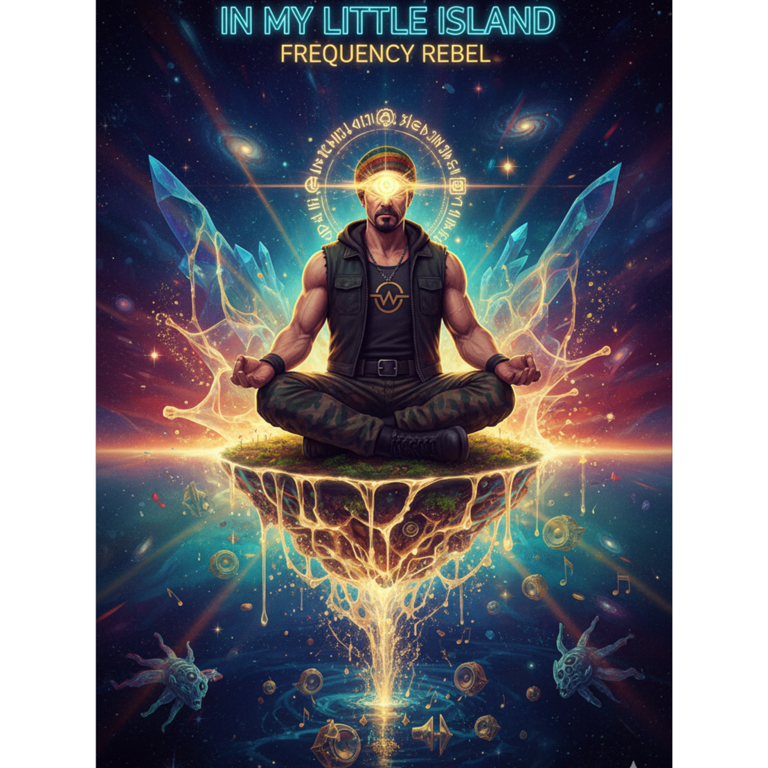 Dirty sub-bass groove, cello, deep 808 Bass, crisp off-beat synth plucks instead of guitar, tight snare and rimshot combo, syncopated kick pattern, metallic percussion hits, airy vocal chops, cosmic pad textures, deep reverb space – uplifting dancehall energy