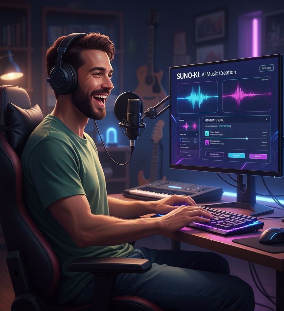 Fun Pop Rock, Male Vocal (Deutsch/Englisch Mix), humorvoll & verspielt, Stadion-Charakter, groovige Gitarren + Synths, catchy Chorus mit Adlibs