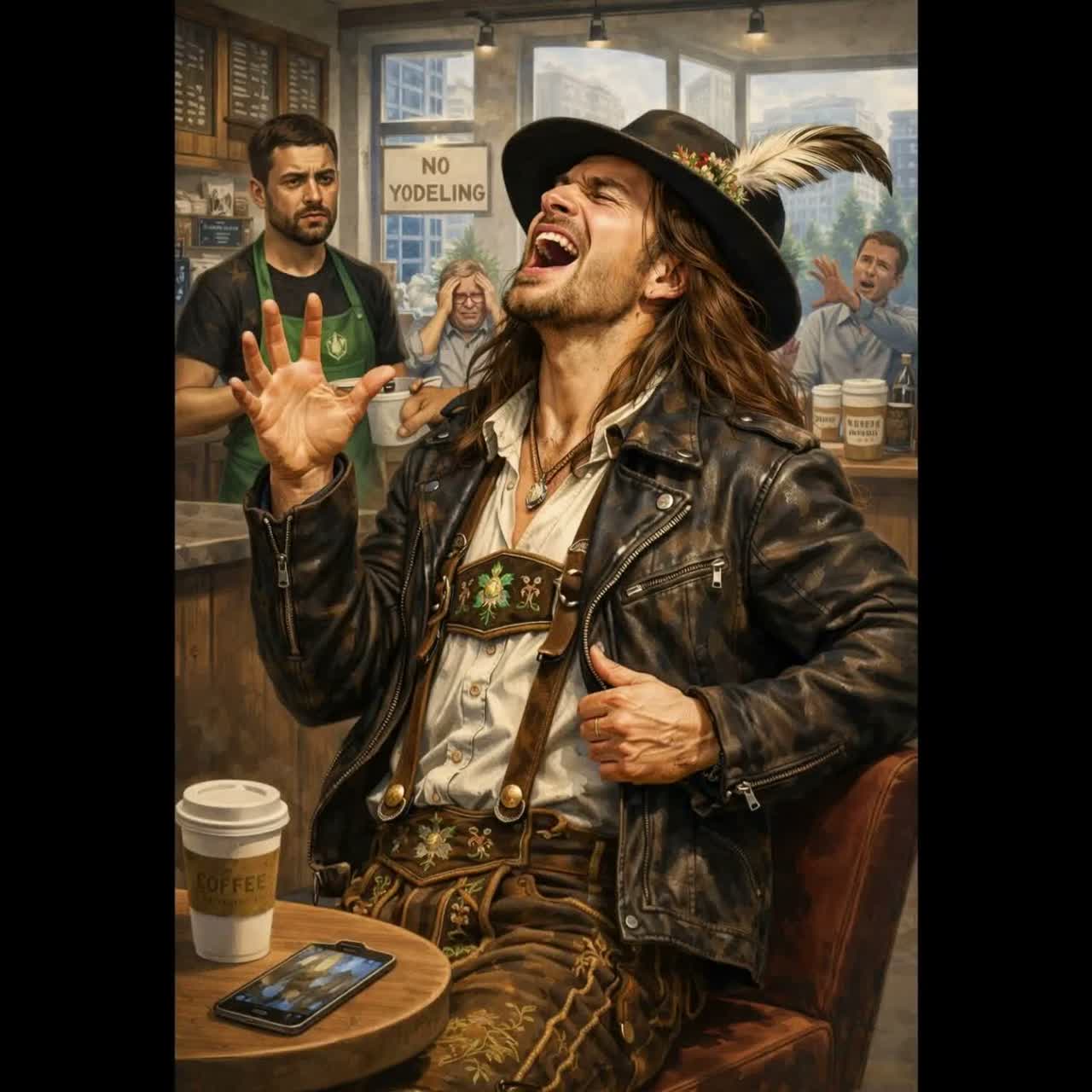 Folksy Yodelcore A Cappella Beatboxing, Medium Tempo Andante, Deadpan Earnest Delivery, Melodic Yodeling Lead, Cool Jazz Noir, Fingerpicked Acoustic Nylon-string Guitar Lead, Upright Walking Bass, Wire Brushed Snare, Playful Mysterious Mood, Cinematic Mid-Century Film Score, Dry Intimate Recording, Baritone Chest Voice, Falsetto Yodel Register, Dry Intimate Close-Mic Recording, Sparse Arrangement