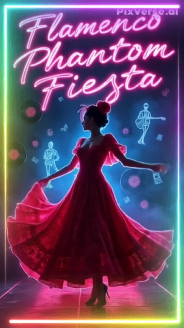 Upbeat blend of swing, house, and flamenco pop with crisp swing piano chords, driving house bass, and vibrant flamenco guitar strums, Include snappy swing brass, flamenco claps, and subtle house synth leads, Use clear, melodic vocals with catchy, layered harmonies for a memorable chorus, Weirdness Level at 81%, emphasizing smooth, danceable grooves with a surreal edge for a ghostly dancer’s stylish club party vibe
