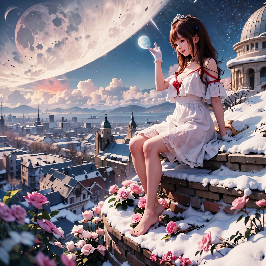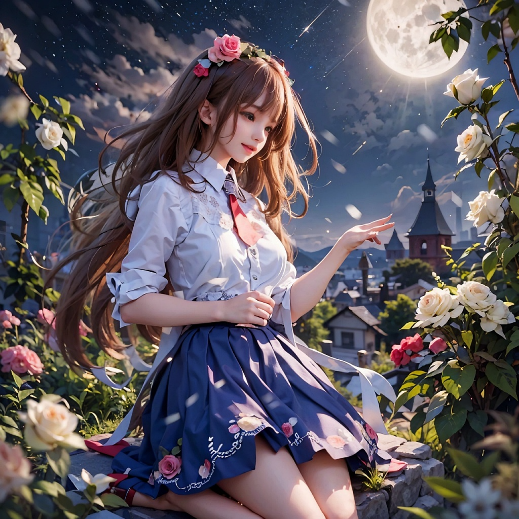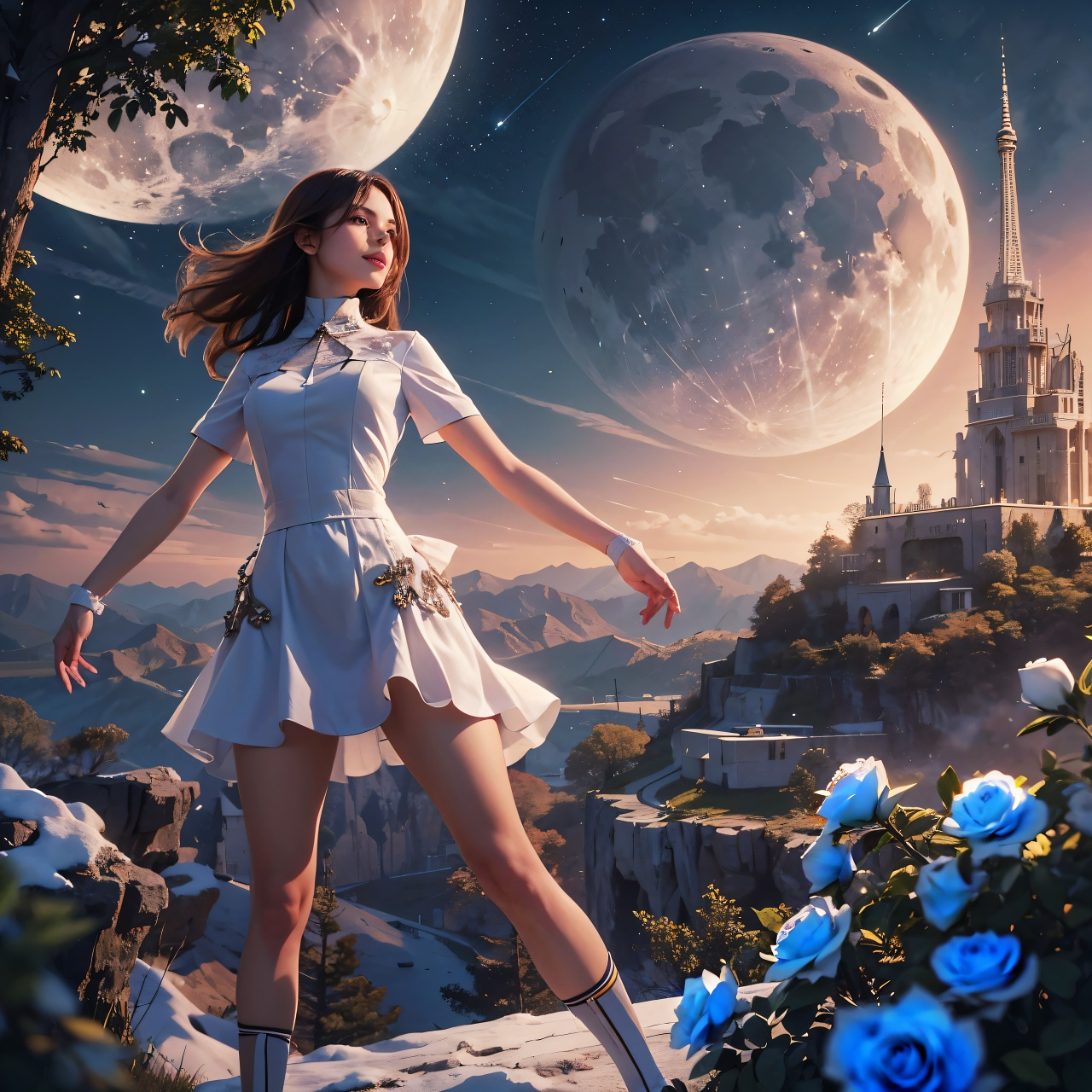Cinematic electro-opera, Expressive soprano vocals, graceful and sacred introduction, dreamy ambient textures, floating melodies, moonlight concert theme, then a dramatic key change to fast EDM dance, 4-on-the-floor beat, energetic synths, playful and cute female vocals, highly emotive and dynamic performance, festival vibes, crowd cheering, stereo panning movement, wide soundstage, BPM: 144