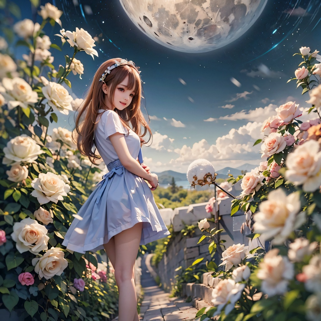 Verse=Cinematic-opera, Chorus=Classic Opera, Expressive soprano vocals, graceful and sacred introduction, dreamy ambient textures, floating melodies, moonlight concert theme, then a dramatic key change to last as fast EDM dance, playful and cute female vocals, highly emotive and dynamic performance, Stereo panning movement, wide soundstage, BPM: 144