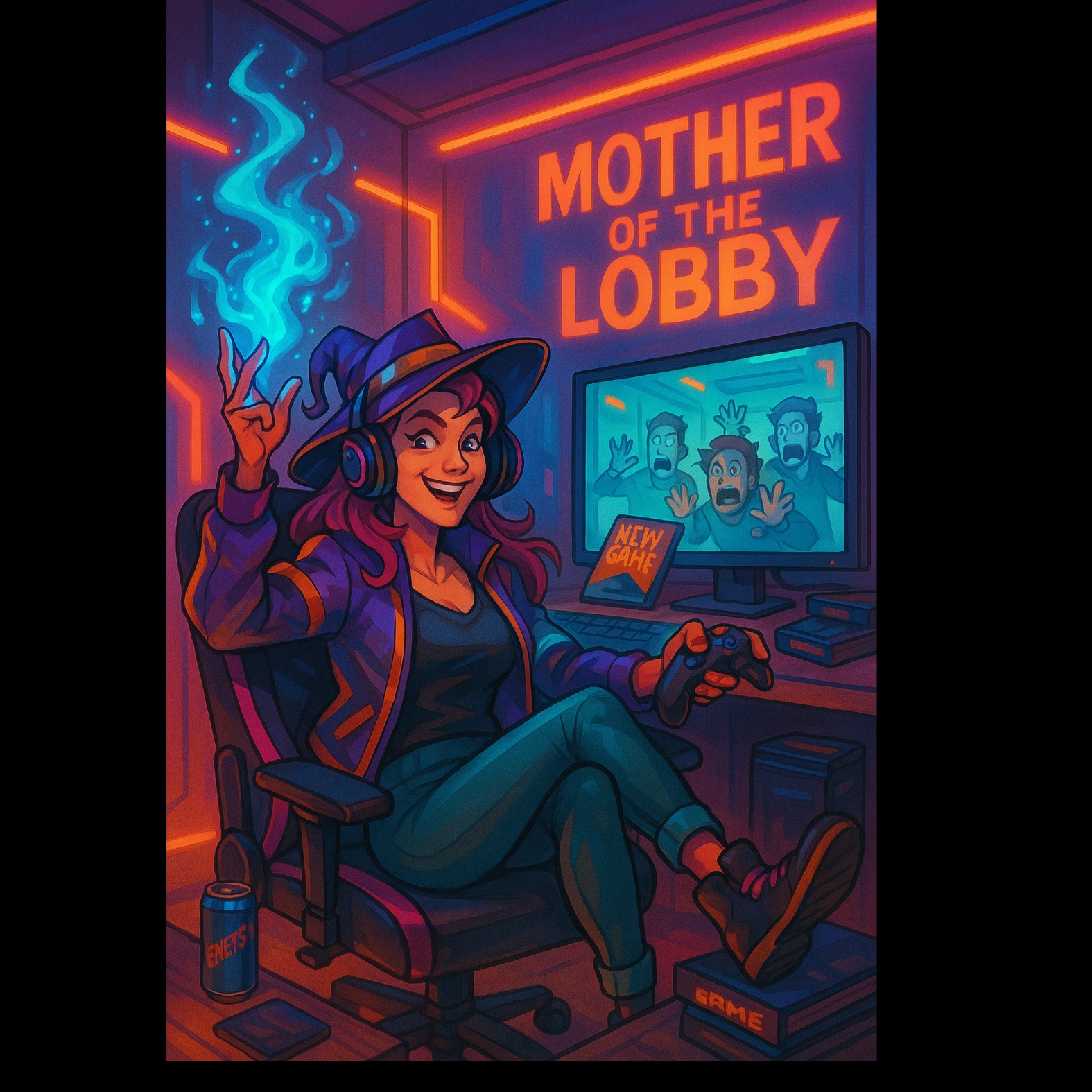 Glitch-hop / nerdcore rap with boss fight energy, Female adult vocals — sharp, smug, and battle-ready, Text-to-speech echoes, retro weapon FX, cassette rewinds, It sounds like a lobby argument and a power move at once, No strings, Just circuits, sarcasm, and chaos
