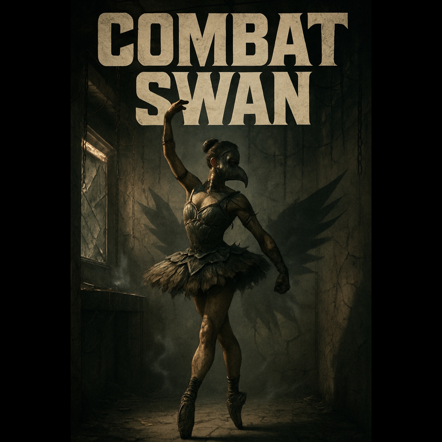 A brutal breakdance ballet performed by mutants in an underground concrete crypt, Start with pounding industrial kicks and reversed tram brakes as bass, Layer glitching hurdy-gurdy drones, metallic stomps, and Paetzold recorder tones that sound like breathing through a gas mask, Add chains dragged across the floor as hi-hats and occasional iron-pipe snares, A broken ballerina music box loops and distorts during breakdowns, Vocal style: low, strained female or androgynous voice with light distortion or vocoder edge, Delivery is clipped, physical, and command-like — no melody, more like barked poetry, Refrain lines hit like combat cues (“Jeté — Drop!”), with scattered glitch fragments from the bridge (“Brace! Hold!”) layered during instrumental breaks
