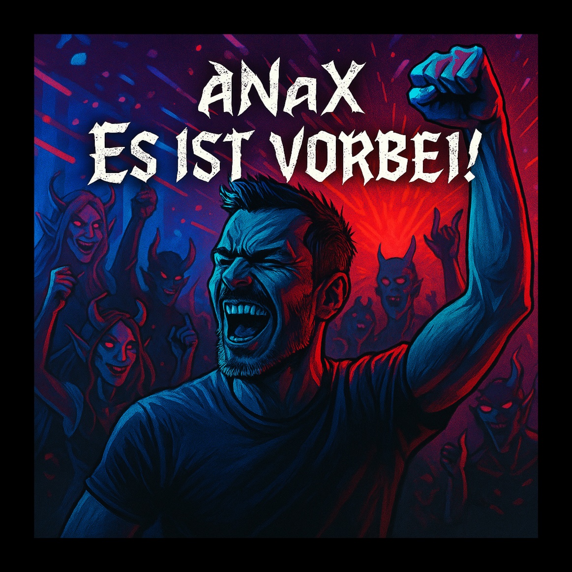 synthesis of 80s, 80s pop, 80s dancable sound and german schlager, hardstyle vibes, dance mood, catchy chorus, 80s sound effects, male vocals, diabolic male voice singing, BG male choir in Interlude