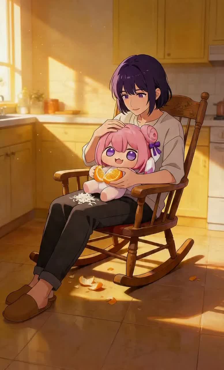 Hushed jazz-influenced female vocals, smoky timbre, intimate crooning, close-mic, whisper-singing, rhythmic creaking rocking chair foley, soft kalimba sparkles, ethereal harp arpeggios, sparse nylon-string guitar, warm Rhodes piano, vinyl crackle, 72 BPM, organic, refreshing, cozy, No drums, no percussion, no auto-tune, no high energy, no electric instruments