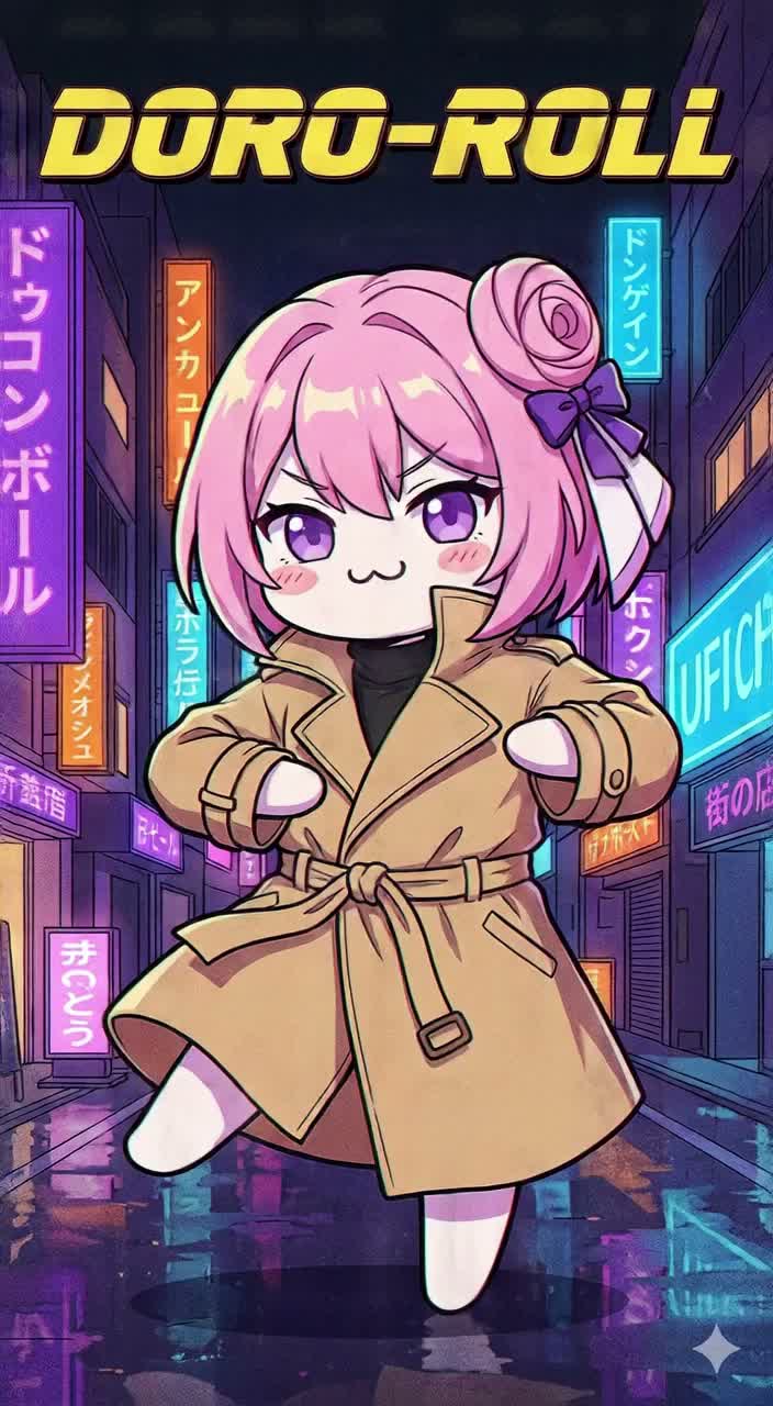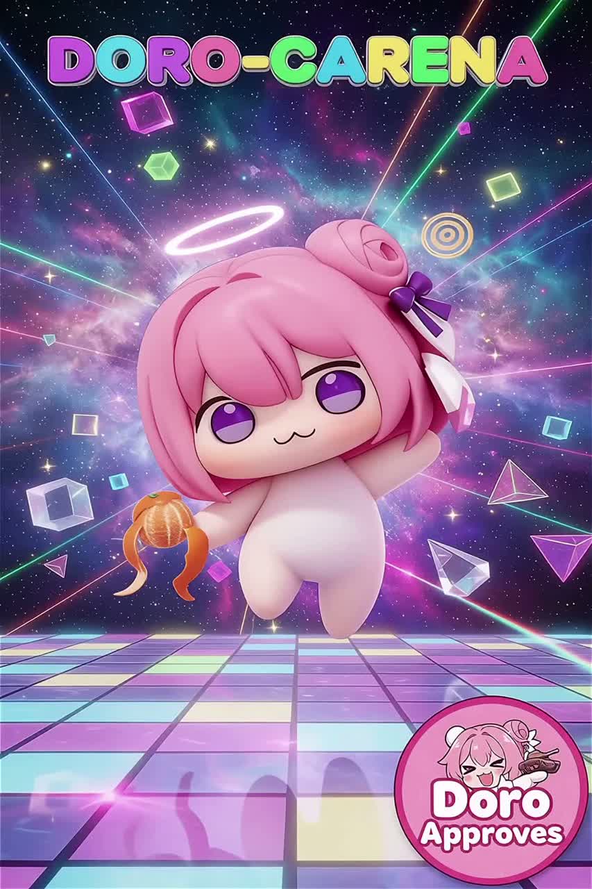 Cute, bubbly, kawaii J-pop anthem, playful and sugary, high-energy, magical bouncy synths, soft xylophone accents, twinkling bells, cheerful plucky synths, layered with whimsical vocal adlibs like "DORO-PYON!" and "doki doka doro doro", tempo 120 BPM, bright and playful percussion with light hi-hats and soft claps, pastel electronic textures, subtle magical sparkles, mix of English, Korean, and Japanese words, dreamy background pads for ethereal effect, call-and-response vocal sections, fun and interactive anime-style energy, perfect for a mascot character homepage theme