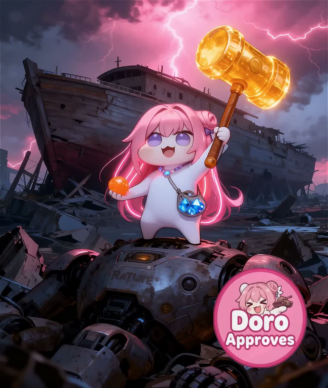 punk rap kawaii pop hybrid chaotic hype punk rap with fast rapid fire verses punchy 90s hip hop drums aggressive hip hop, rap rock, alternative rock, punk rock, experimental energy and electronica bombast fused with super bubbly kawaii pop choruses full of high pitched sparkly vocal chops twinkling glittery synths bell plucks supersaw stacks cute future bass drops magical transformation fx pitter patter paw print percussion pastel rave energy major key sparkle playful gremlin chaos repetitive catchy doro doro doro chants layered like vocaloid choir shiny cute evil ad libs high energy club banger