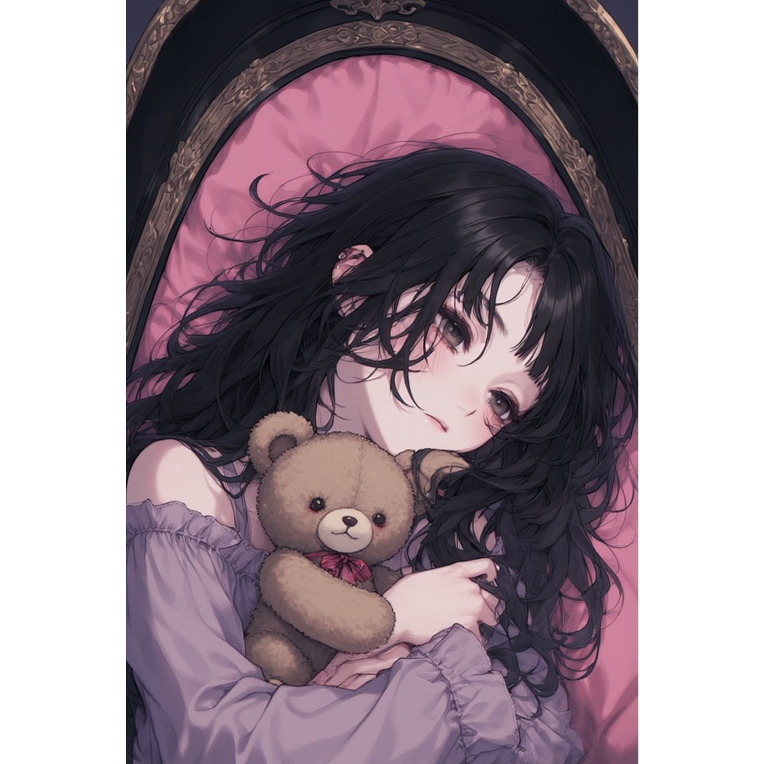 A brooding yet catchy blend of doomcore, art rock, and darkwave, this track layers deep bass and dark trap beats under distant, modern pop female vocals—moody but sweetly shy, Guitar plucks and whimsically panned mbira twinkle with a lofi psychedelic haze, A haunting, charming old music box melds with electro-emo rhythm, creating a chill, weirdcore lullaby feel, Experimental textures and offbeat synths weave through alt pop melodies, balancing depth with an inviting dark bubblegum pop edge