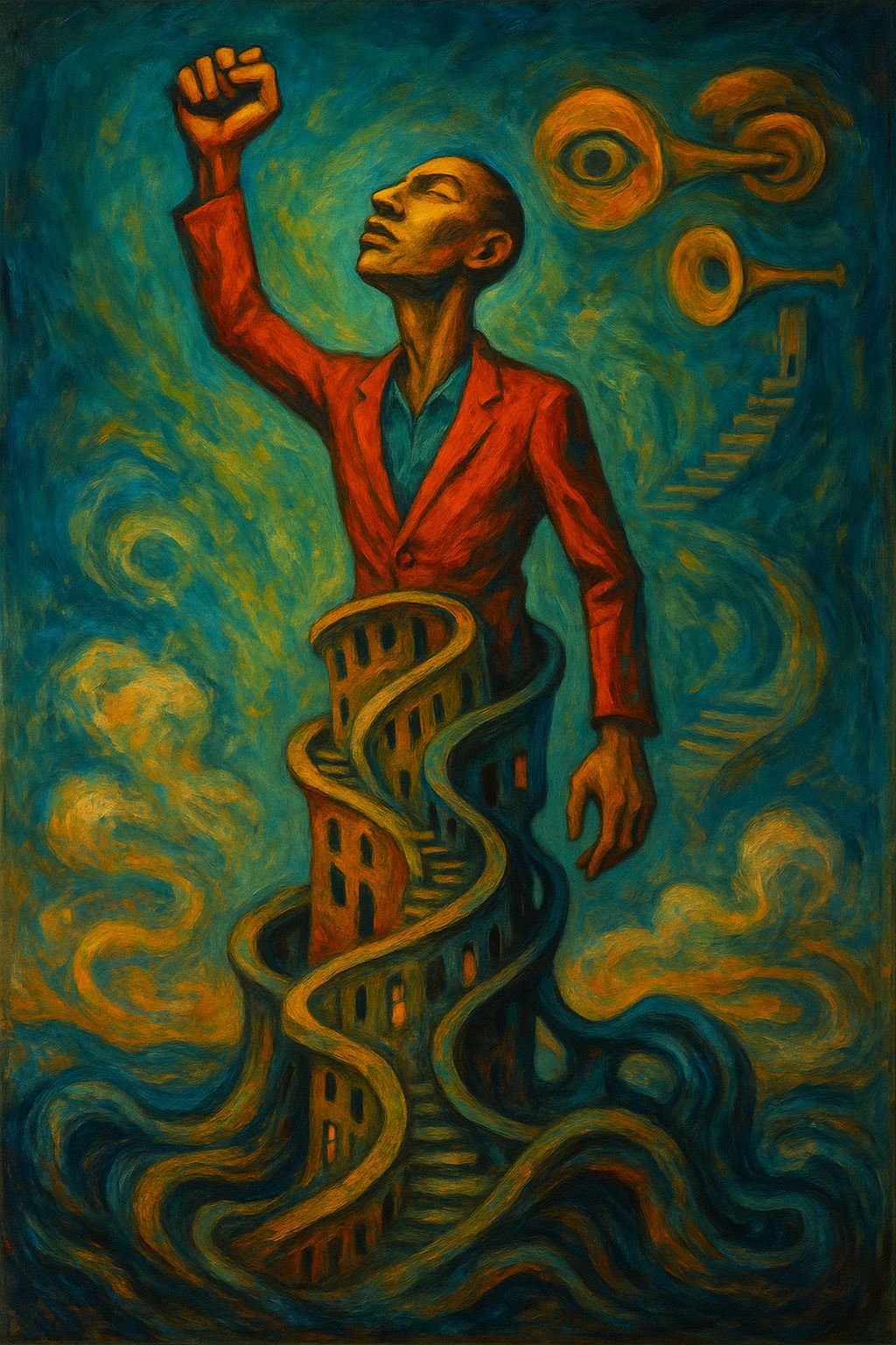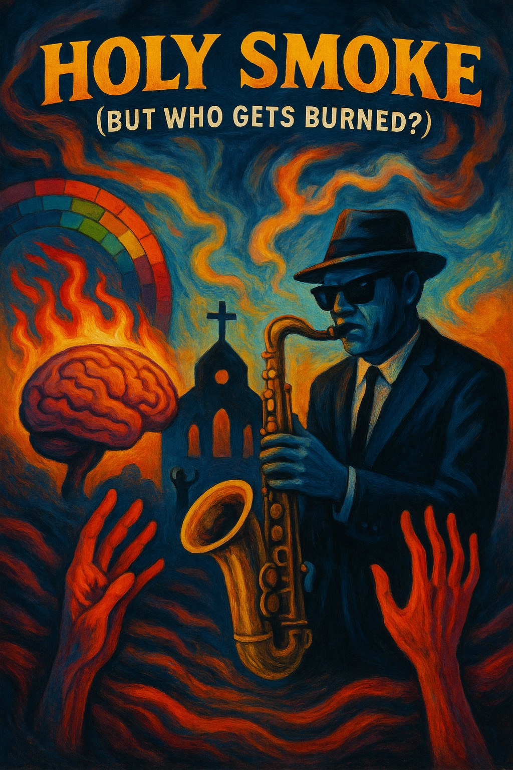 style of Tower of Power, Uplifting, soulful, and powerful, Tight rhythm section, energetic brass (sax, trumpets, trombones), groovy baritone Saxophone, funky bass, soulful male vocals with gospel-style backing