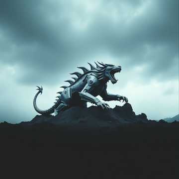 industrial metal, mechanical, metal, male vocals with distorted layers and pounding rhythms, industrial, heavy