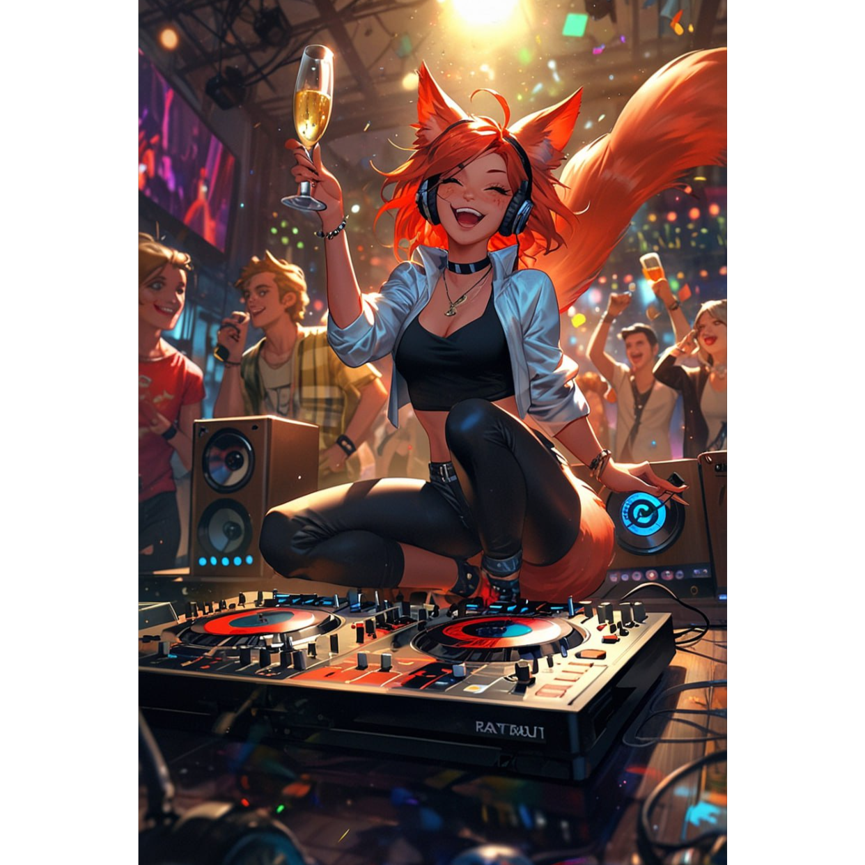 Upbeat pop, playful and magical, female quirky vocals, bouncy synth bass, driving rhythm, fast-paced, retro 80s cartoon vibe