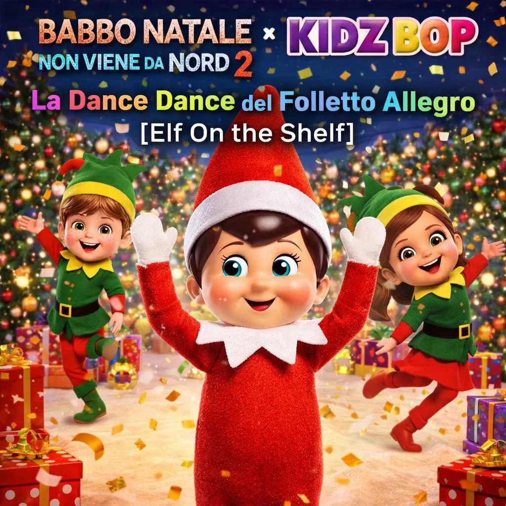 Bright, bouncy kids’ sing-along with only child vocals in unison and simple call-and-response moments; claps and stomps as body percussion keep an easy, playful tempo, Melody stays in a narrow, comfy range so all ages can join, chorus super repetitive and catchy, with a gentle dynamic lift on each “la dance dance del folletto Allegro” hook