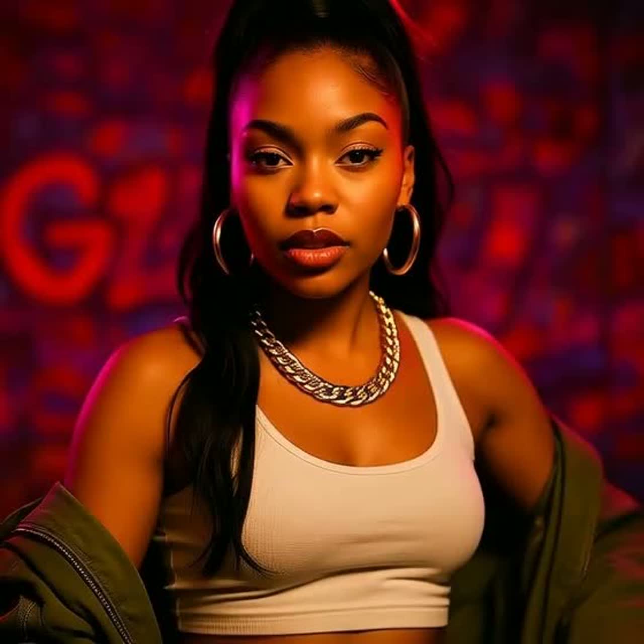 A brooding lo-fi intro sets the mood with deep electronic bass and eerie synth pads, Trap and drill-inspired 808s drive crisp, syncopated hi-hats, joined by polyrhythmic African percussion, Verses alternate smooth falsetto and agile female rap, layered with textured harmonies, Transitions use warped synth stabs and edgy effects, raising tension into an atmospheric, infectious pop chorus