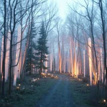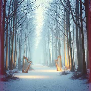 Ethereal fantasy score built around airy flutes and shimmering harp arpeggios, with soft distant mixed choir blooming in slow swells, Gentle stream and forest birds woven into a lush 3D sound bed, subtle wind textures, and long, glassy reverb tails, Melody evolves gradually, using modal shifts and call‑and‑response motifs to suggest peaceful exploration and ancient magic, soundtrack, magical, harp, theme, soft, ambient, slow, gentle