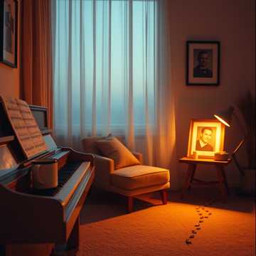 Spoken-word poetry reading by an elderly Australian grandmother voice (Melbourne), close-mic ribbon vibe, natural speech cadence, plate 1, 2 s with gentle bloom after phrases, Opens as haunted Baroque collage in the style of Handel on a detuned radio: A minor, detuned harpsichord arpeggios, tremolo cello, sul ponticello strings, cathedral reverb, vinyl crackle, light wow/flutter, gentle micro-skips, reverse-choir swells, low room hum, Start 64 BPM rubato, After the “play Gloria” line, morph to 128 BPM pop-rock: four-on-the-floor live kit, steady electric bass, jangly rhythm guitars with clean arpeggios, soaring 80s pad, short gated snare, subtle Italo shimmer, Between verses, dip back into haunted textures and quiet birds or sea, Do not quote Gloria melody, Brighten after “love is free, ” End by muting drums to music-box, reverb tail, vinyl hiss, quiet cosmic fade