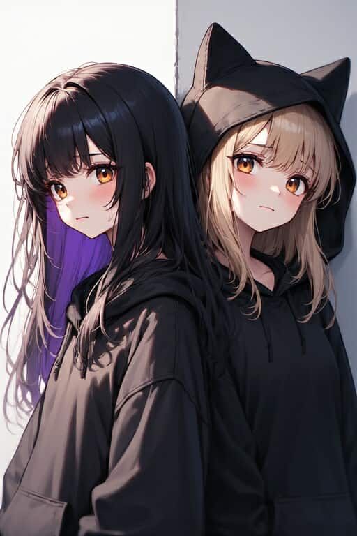 A dark bubblegum dream pop duet between two female singers, both with fragile, emotional little-girl-style vocals, The first voice (GOD OF ANIME) sings in a soft, crying style, innocent but dramatic, The second voice (CUPCAKE) is also little-girl-like, but slightly sweeter and melodic, The song is structured as a back-and-forth conversation โ each girl takes turns singing verses, then they join together in the chorus (BOTH), Lyrics focus on social anxiety, feeling out of place wanting to be more popular and seen the right way, instruments: soft electric beats, pop, catchy, emo, electric piano, both voices fade out on the last word popular, sad but with a little more confidence