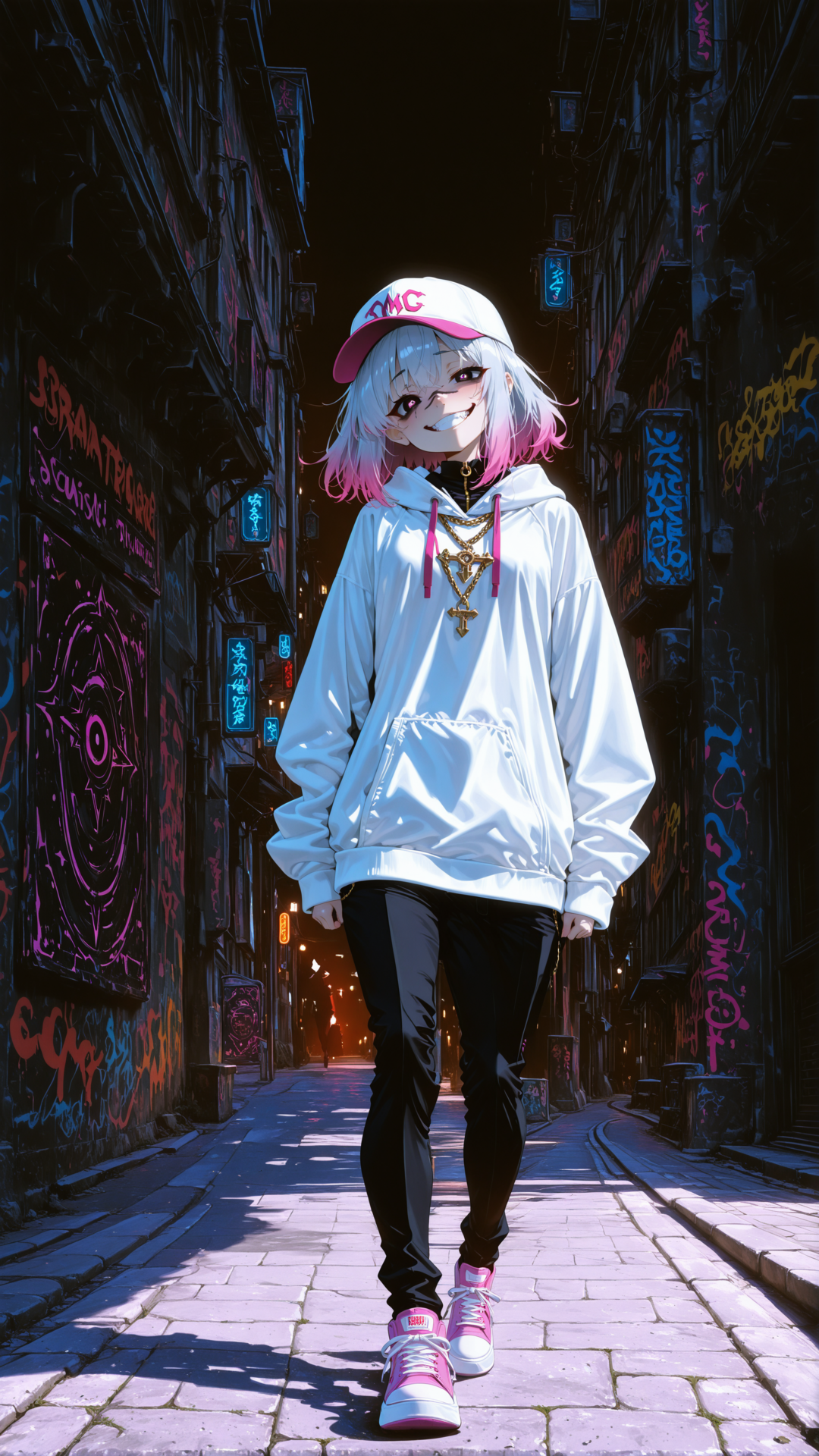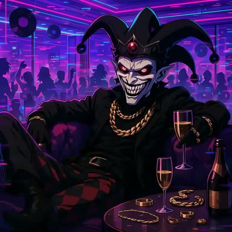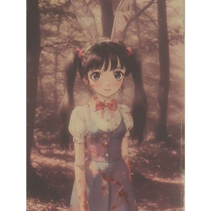 Sweet yet ominous vocals, warped with eeriaggressivdistortion and doubled by demonic echoes, float over playfully ominous pads and chopped, glitched vocal fragments that stutter like corrupted tapes, Everything pulses atop pounding horrorcore percussion, distorted electro-rave bass, and cinematic noise walls that slam into nu-metal crunch, Verses twist glitchy alt-pop into warped VHS textures, layered with toy piano jingles, carnival synths, and subtle tape hiss, Mascot-like vocal chops weave through, detuned and unsettling, as though the song itself is โsmiling too wide, โ Pre-chorus surges upward into lush future bass, shimmering with glitchy blips, static bursts, and cute-screamo interjections, Playful house rhythms clash with psychotic synth stabs, while childlike music box melodies bend and distort, unraveling into something monstrous, The chorus detonates in eerie rave chaos, a collision of distorted melodies, screaming dubstep drops, VHS rewinds, and tape warps that stretch the