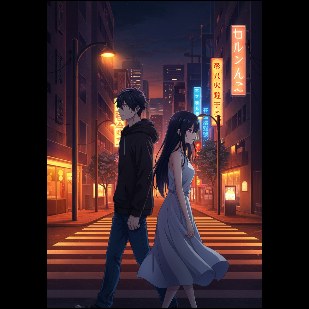 Female vocal, 80s city pop song with jazzy chords, dreamy synths, and a smooth groove, Captures a springtime cityscape and a bittersweet love story under neon lights
