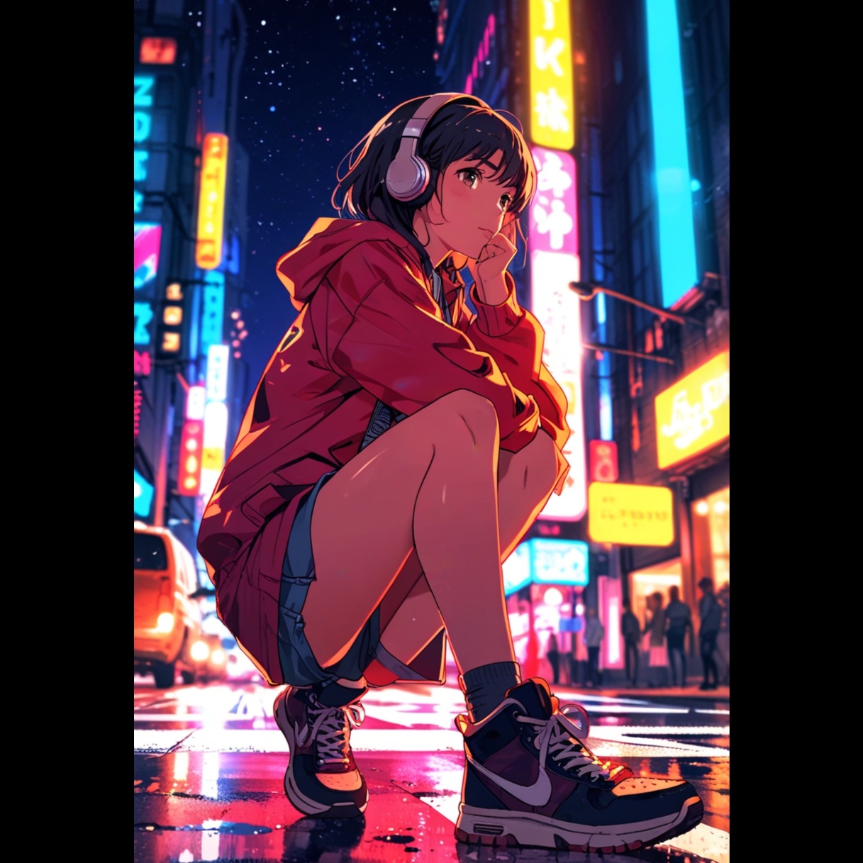city pop, 2030, female kawaii vocalist, hip hop, jazz, melancholic, glitch, avant-garde, groovy, fast tempo, heavy bass