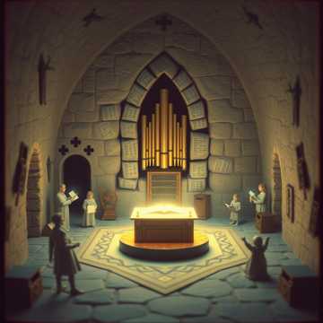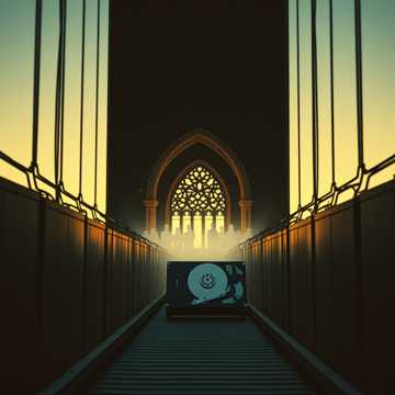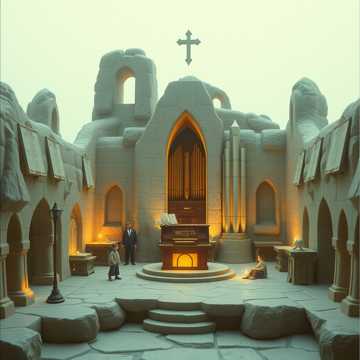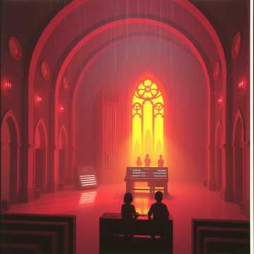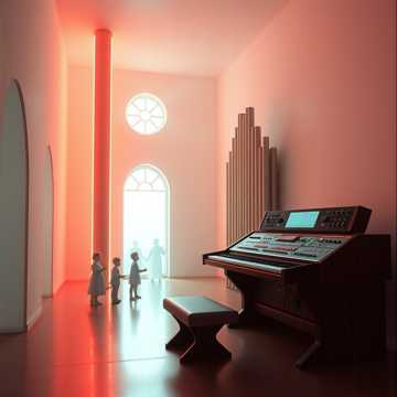 sacred analog electronic liturgy 74 bpm warm tubedriven pipe organ through leslie speaker prophet 5 synthesizer pads with slow attack heavy subbass like distant cathedral bells childrens choir ages 812 recorded dry then processed through vintage tape saturation and slight pitchshifting 3 cents creating heavenly dissonance the choir carries the prechorus melody alone alternative rock, electronic, experimental, art rock falsetto weaving countermelodies beneath the childrens voices electronic drums brushed with massive bricasti reverb warm studer tape compression themes of floppy disks as communion wafers atmosphere 1980s church basement with crt monitors flickering while the childrens choir rehearses upstairs leaking through the vents