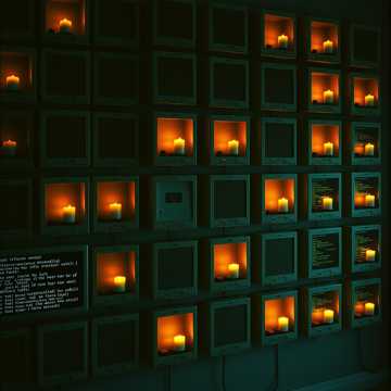 meditative analog electronic 50 bpm slow analog synthesizer portamento gliding between notes over 10 seconds subbass at 20hz continuous childrens choir processed through extreme reverb with 12second decay singing the names of lost data alternative rock, electronic, experimental, art rock vocals as mourner listing the dead pipe organ with slow attack hand percussion from dropping pebbles on hard drive platters recorded themes of prayer for data that never arrived packets dropped into the void atmosphere memorial wall with childrens photographs mixed with error logs candles burning on routers heavy analog sadness