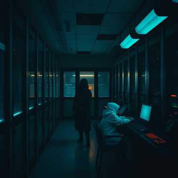 dark ambient sacred electronic 48 bpm free time no fixed beat for 6 minutes moog synthesizer with sampleandhold creating random pitches like dying souls subbass at 17hz felt as physical pressure childrens choir processed through granular synthesis voices stretched to 10x length singing vigil prayers for quarantined files alternative rock, electronic, experimental, art rock vocals as night watchman whispering then terrified pipe organ with heavy reverb simulating vast empty space themes of keeping watch over infected systems through the night atmosphere darkened server room at 3 am with only the glow of virus scanners on screens and children keeping watch in sleeping bags heavy analog tape hiss as night sounds