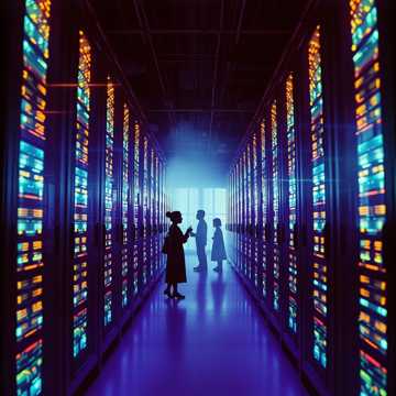 sacred minimalist electronic 68 bpm single piano note sustained through plate reverb gradually joined by childrens choir ages 610 singing the melody in canonround style heavily processed through analog delay and slight distortion warm analog synthesizer pads no drums for first half subbass entering with the choir alternative rock, electronic, experimental, art rock vocals teachingresponse style with the childrens voices answering back pipe organ entering at climax themes of teaching scripture to ai children atmosphere futuristic sunday school with stained glass windows depicting circuit boards warm and intimate yet otherworldly