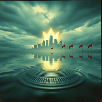 Lush, melancholic ambient synth pads open over a clean minor-key guitar loop, Baritone vocals deliver soulful verses above neo-soul textures and warm R&B grooves—soft keys, soulful bass, and gentle percussion, Delicate melodic motifs and childlike, glowing touches add warmth while the mood stays haunting and emotionally raw