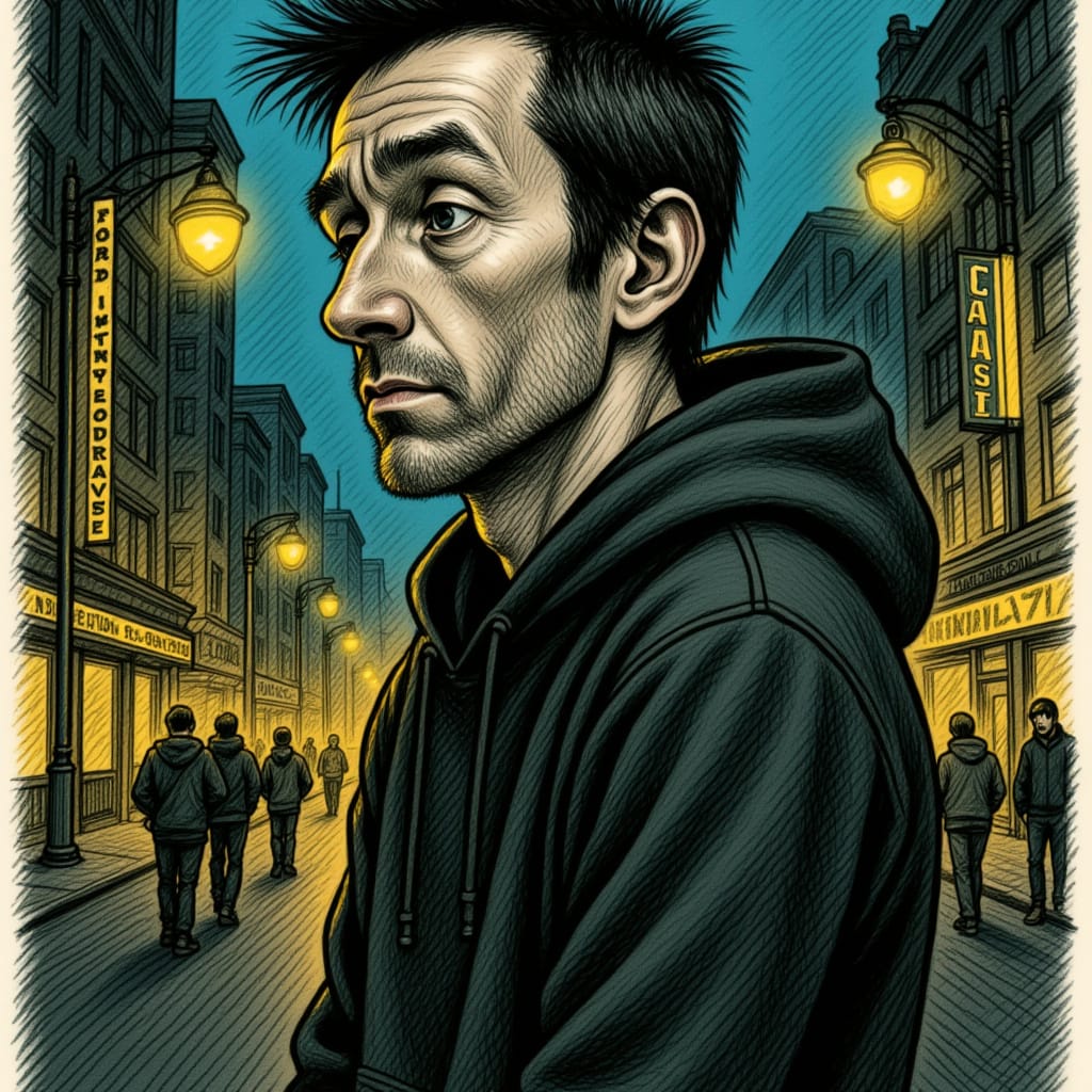 Experimental boom bap with moody analog textures, ambient noise layers, dry drums, and distorted piano loops, Low-energy vocals, spoken cadence with subtle venom, Key: D minor, BPM: 92