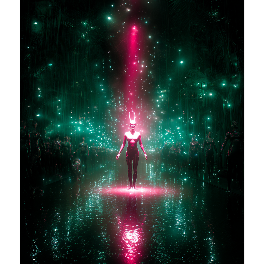 A cybernetic black metal odyssey surging with mechanized aggression and digital decay, Blending harsh industrial metal textures with the scorched shrieks and ultrafast drumming of black metal, this track pulses with ultrafast, synthetic drum patterns and distorted guitar walls drenched in metallic overdrive, Fractured atmospheres twist through layers of dark electro and power electronics, echoing through vast digital cathedrals, The vocals pierce like machine-filtered screams from the void, while bursts of power electronics and dystopian synths conjure a brutal, post-human ritual, A cinematic, apocalyptic descent—at once ancient and futuristic, ‑pop, ‑nu-metal, ‑edm, ‑funk, ‑upbeat, ‑trap, ‑hip hop, ‑lo-fi, ‑melodic, ‑dream pop, ‑acoustic