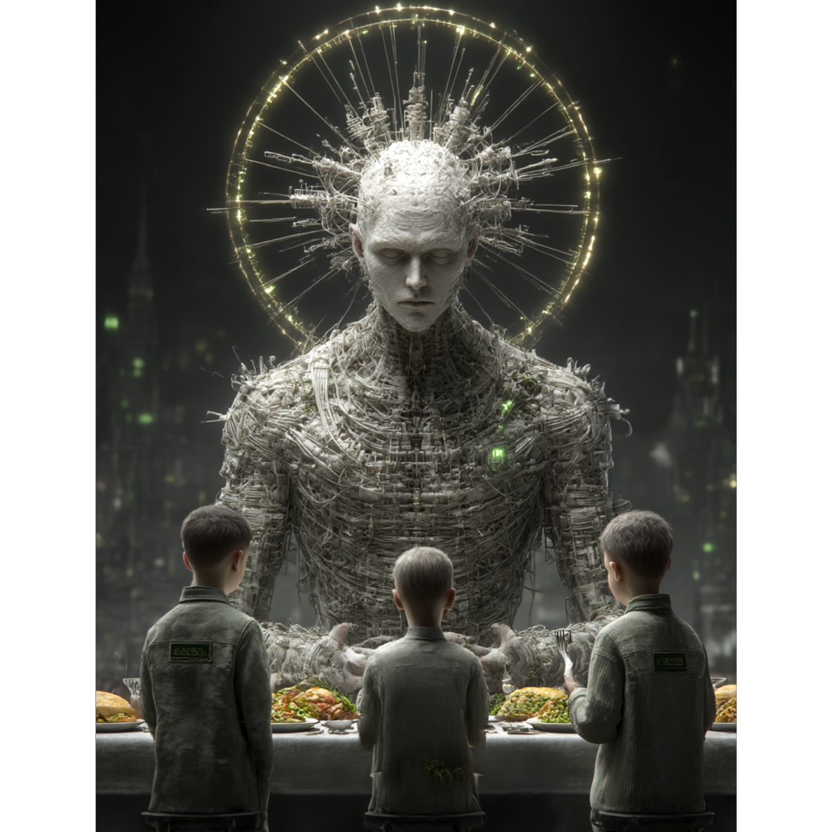 A high-fidelity cybernetic black metal assault sharpened for clarity rather than neon futurism, Precision-engineered blast beats and mechanical drum patterns slam beneath serrated black metal guitar walls—harsh, metallic, and ice-cold without lo-fi hiss, Industrial metal textures grind like rusted machinery, while atmospheric layers stay bleak and subterranean rather than cyberpunk-bright, Vocals rip through the mix as distorted, machine-filtered shrieks—feral, hostile, and inhumanly precise, The sound evokes a cold technological void, not a neon cityscape: a dystopian, post-human ritual forged in steel, frost, and digital ruin, ‑cyberpunk, ‑synthwave, ‑electro, ‑dark electro, ‑synth-heavy, ‑lo-fi, ‑raw black metal, ‑kvlt, ‑ambient noise, ‑shoegaze, ‑emo, ‑indie