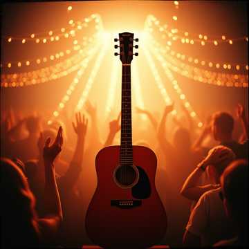 Acoustic Strumming guitar, Live concert, Echo, Audience, Audience singing along, Audience clapping, Audience Cheering