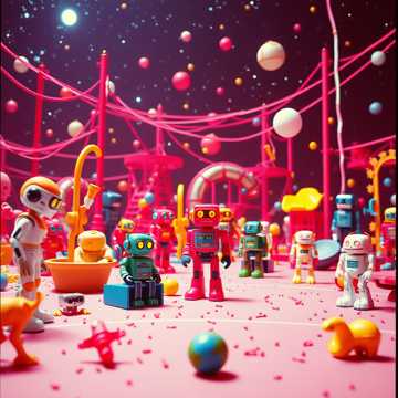 Experimental fusion of glitch-hop, dark cartooncore, and interstellar spoken word, Mix wacky, dystopian beats with playful but ominous synths, saturated bass drops, and digital toybox samples, Layer male rap vocals with distorted alien effects and female vocals delivering calming yet powerful messages β like an oracle in the chaos, Tempo: 87 BPM, Build cinematic transitions with retro arcade bleeps and echoing kid-toy percussion, Add warped choir hums, reversed lullaby textures, and a break with slowed-down polyrhythmic claps, Reference themes: AI takeovers, child wisdom, cosmic comedy, dream-warfare, and parental redemption, Fusion of humor and prophecy, Let the remix feel like a Suno skit turned galactic resistance anthem β surreal, absurd, yet strangely inspiring, No direct celebrity names or references
