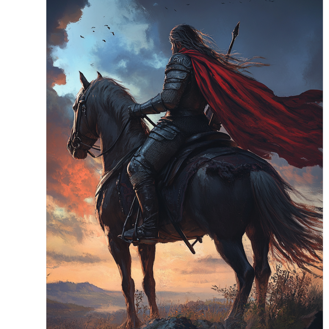 Melodic Metal (Epic Atmosphere, Powerful Riffs, Haunting Strings, Dynamic Vocals, Emotional Guitar Solo, Dark yet Heroic Theme)