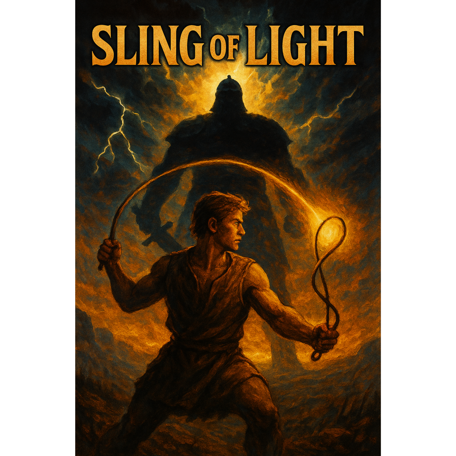 Swedish Power Metal, epic orchestral metal, heroic anthemic march, commanding baritone vocals with dry growl and clean projection, layered choirs, galloping electric guitars, punchy bass, energetic drumming with rolling double kicks, catchy synth melodies that evoke battle and triumph, [instrumental interludes with blast beats and soaring guitar harmonies], cinematic soundscapes, battlefield atmosphere, lyrical focus on faith, perseverance, and biblical heroism, heavy bass drop, folk christian metal