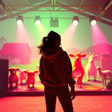 playful comedic hip hop, upbeat tempo, bouncy bass, farm chaos energy, humorous frustration, joyful sass, lighthearted but real, quirky rhythm, female lead, street rap style with a touch of new orleans jazzy street artists, touch of battle rap with lots of bounce