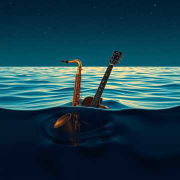 Funk, soul, groove, Live recording, sulty, longing, RnB, slow jam, electric guitar, tenor saxophone, Live jam, bass, guitar, saxophone, Live recording, ocean waves, crowd, guitar solo, vocal solo