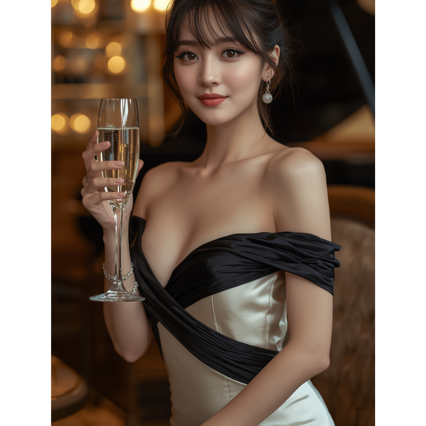 High-energy K-pop New Jack Swing, sharp snare groove, tight funky bassline, smooth Korean-style English delivery, call-and-response hook, 90s synth brass stabs, layered female vocals, whisper + shout adlibs, mid-fast tempo, ultra-danceable club mix