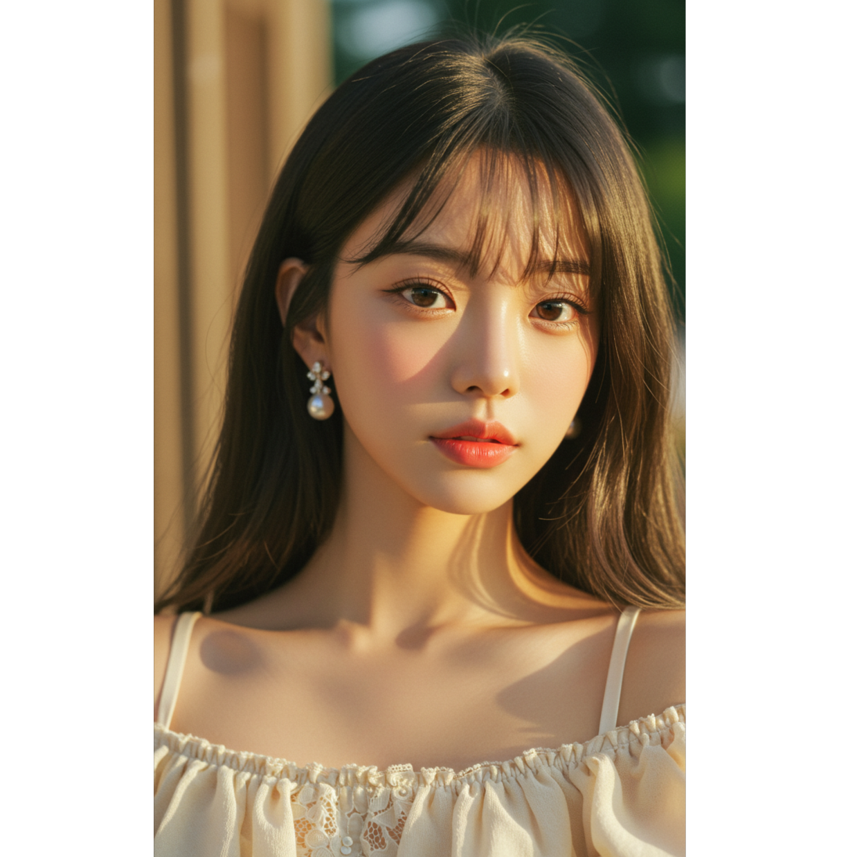 Soft acoustic pop ballad with mid-tempo groove, Gentle fingerstyle guitar must lead the rhythm with light body tapping โ no strumming, no drums, no electronic or upbeat sounds, Absolutely no rock tone, Instrumentation should remain minimal, intimate, and acoustic only, Vocals must be sung by a 17-year-old girl using clean chest voice only โ no falsetto, no whisper, no gritty or belting tone, Vocal delivery should feel like a quiet, emotional first love confession, Soft ambient pad and glockenspiel shimmer may appear only in the chorus