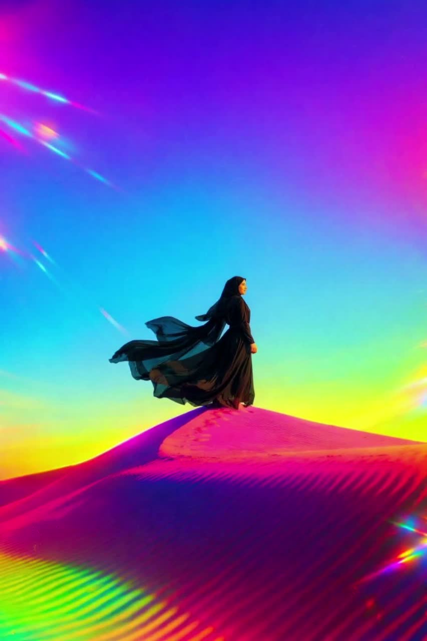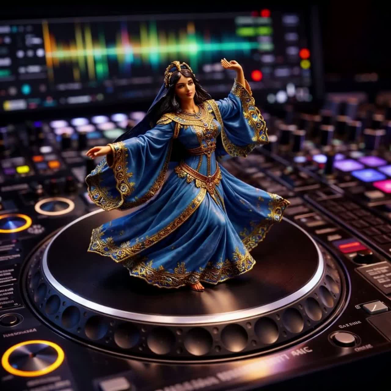 Wild psychedelic Tripy Arabic EDM: hypnotic, chaotic, Arabic-flavored lead: Zurna (zurna/mizmar/trumpet timbre) with piercing bends, microtonal runs, frantic trills, and call-and-response stabs over a pounding 909 kick, Rolling sub-bass, claps, hats, off-grid percussion, and stop-start edits, Sound design: bubbly pops, clicks, and crackles that swirl around your head with quadrophonic mind tricks—fast autopan, ping-pong delays, rotating phasers, comb-filter sweeps, and Doppler whooshes, Add granular stutters, reverse-reverb blooms, pitch-warped risers, tape-stop dives, and morphing textures that melt the groove then snap it back, Mix: extremely wide, immersive stereo; keep kick/sub centered; everything else moves constantly, Make the listener feel surrounded, dizzy, and euphoric—like a sonic mirage in a neon desert, DMT trip in a Sandstorm on the back of a wild Camel running for its life, Fluid BPM speeding and slowing to tell a story, BIG STORY IN SOUND, Bath at end of Journey, 8===D~, ‑pop