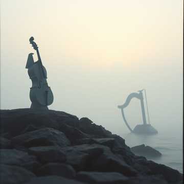 Haunting atmospheric orchestral, instrumental, 75 BPM, A minor, Sparse and isolated, Opens with a solo cello playing a slow, mournful melody over wind-like ambient pads, A Greek lyra enters with a fragile counter-melody, like birdsong that might stop at any moment, The arrangement stays deliberately empty -- long silences between phrases, the sound of space and stone, Frame drums enter at the halfway mark with a heartbeat pulse, and low strings add weight without volume, A brief swell of layered strings at the three-quarter mark suggests overwhelming grief before falling back to the solo cello, Ends with the lyra motif fading into silence, Production should feel like cold dawn air on a rocky island -- vast, lonely, ancient, ‑modern instruments, ‑electric instruments