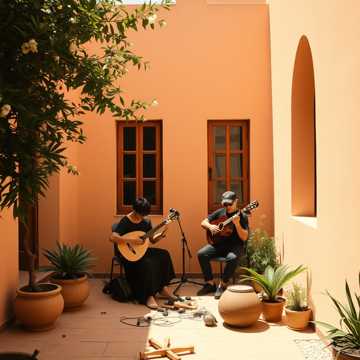 Warm Mediterranean sound, 80 BPM, D major, primarily instrumental with optional vocal hum, Opens with a fingerpicked bouzouki playing a gentle, cyclical pattern in a major key -- the first sustained warmth in the album, A Greek lyra enters with a simple, joyful melody that breathes easily, unhurried, Light frame drum with a shuffle feel, bees-and-summer texture, Oud adds harmonic depth in the lower register, At the midpoint, an optional wordless vocal melody (male and female, softly layered) joins the arrangement, humming the main theme, A mandolin adds brightness and movement, The arrangement stays open and airy throughout -- no orchestral swell, no dramatic build, The final section returns to bouzouki and lyra alone, the melody settling into peace, Production should feel like afternoon sun on limestone, warm earth under bare hands, the sound of a garden tended by people who have earned the right to rest, ‑modern instruments, ‑electric instruments, ‑vocals