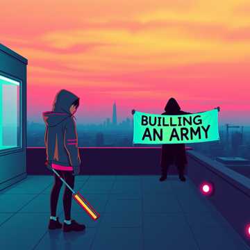 Anthem, chanted white boy reggae chorus, lo fi hip hop verses, minimal instruments, bass solo