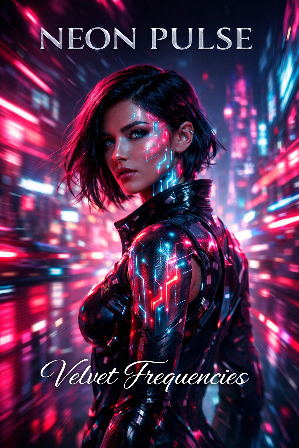 Male vocals — melodic, emotional, powerful, clean, Vocals float above the chaos with confidence and clarity, High-energy cyberpunk track at 210 BPM blending math-rock guitar tapping with digital delay, dark synthwave basslines, and fast UK garage 2-step drums, Polished futuristic production with a neon city atmosphere, Twinkly, technical guitar melodies weave through powerful rhythmic motion, while melodic female vocals deliver emotional intensity and strength, The track feels alive, fast, and electric — a fusion of human emotion and digital energy, Futuristic, high-tech, vibrant, and cinematic, with a sense of motion, freedom, and luminous intensity