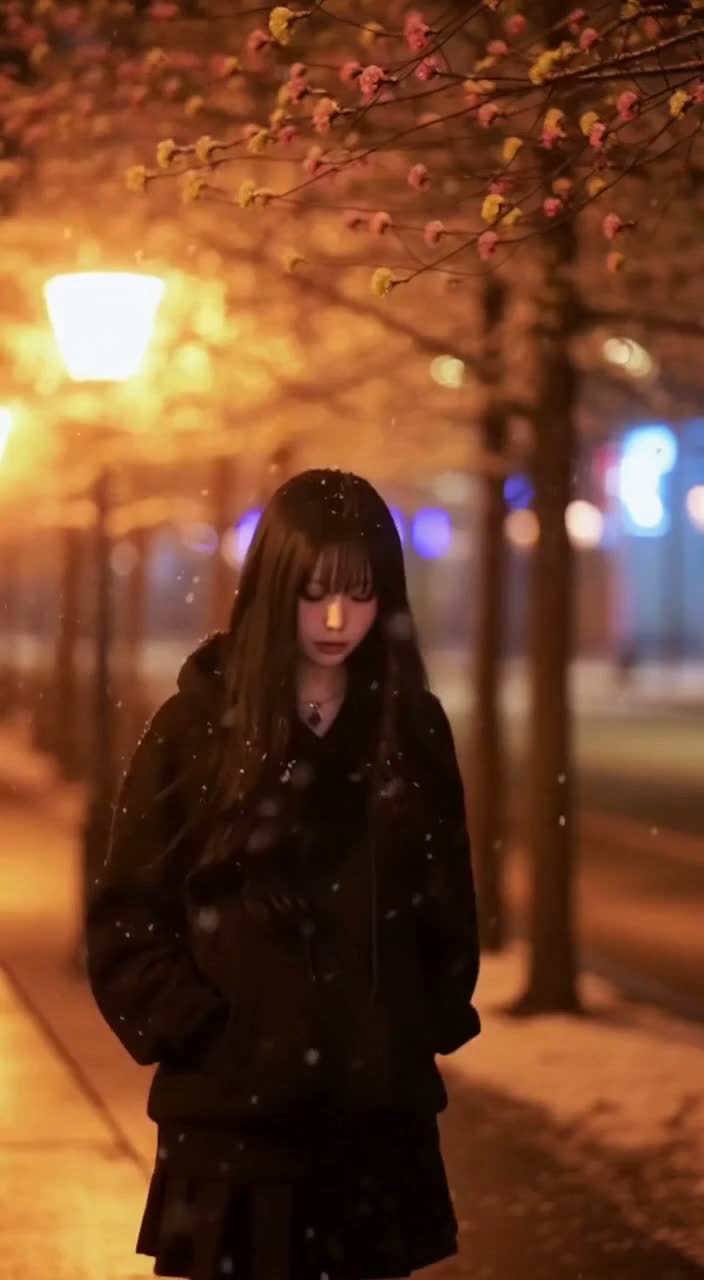 slow emotional Japanese piano ballad, 70 BPM, female vocal, soft and fragile tone, emotional and cinematic strings, warm reverb, minimal percussion, melancholic and nostalgic atmosphere, theme: lost love and memories, symbolic snowfall in spring, lonely and heartfelt mood